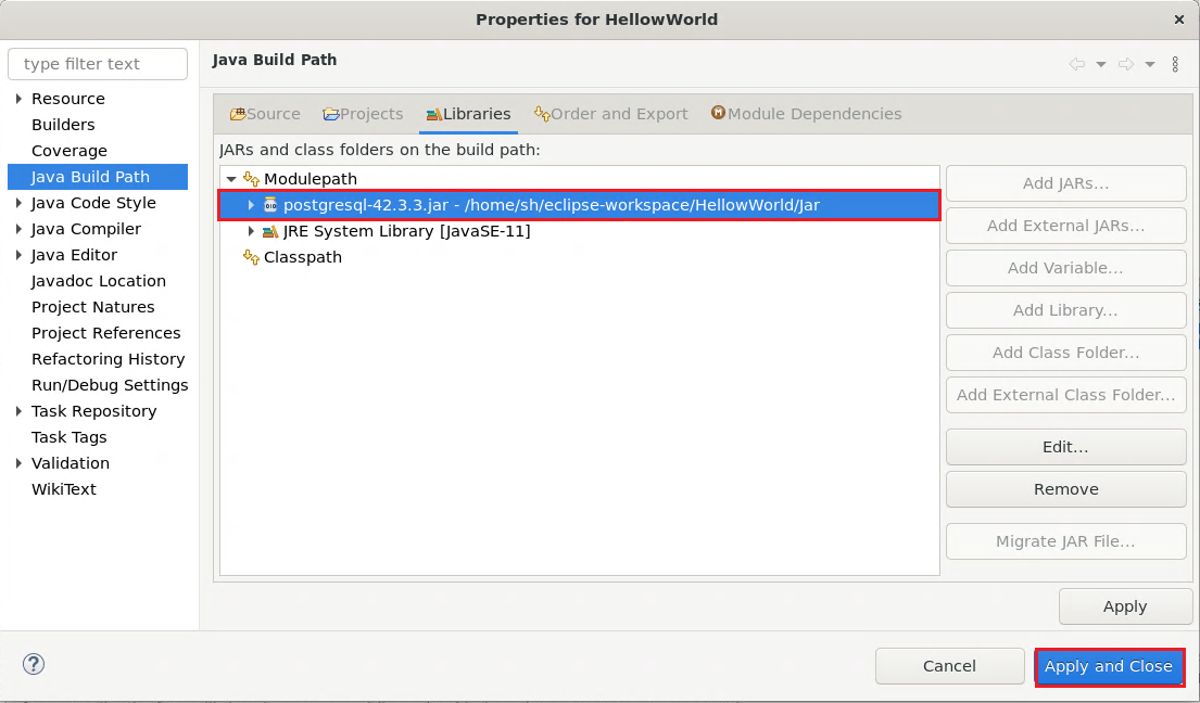 4) eclipse-workspace 폴더안에 프로젝트명에 jar 폴더안에 postgresql-42.3.3.jar 복사